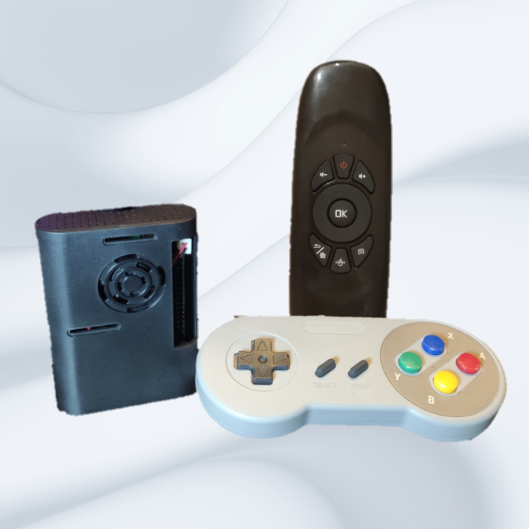 El kit incluye: Raspberry Pi 4 de 4GB de RAM. Cuatro MicroSd con sistemas. 2 Joysticks.Control remoto. Fuente de alimentación. Cable HDMI para conexión a TV.